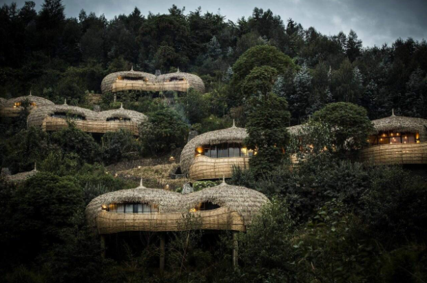 Bisate Lodge represents the pinnacle of luxury gorilla trekking accommodations. This Wilderness Safaris property features only six forest villas, each designed to resemble traditional Rwandan palaces with contemporary luxury touches. The dramatic architecture, with conical structures offering 180-degree views of volcanic peaks, creates an aesthetic as memorable as the gorilla encounters themselves.